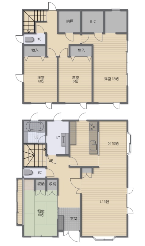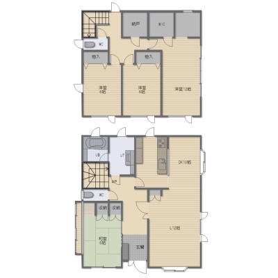 4LDK└ 1階:LDK22帖 和室6帖 / 2階:洋室12帖 洋室6帖 洋室6帖