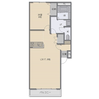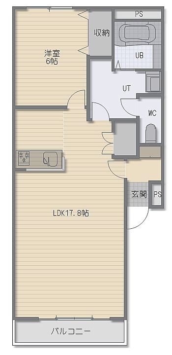 1LDK(51.83m²)└ LDK17.8帖 洋室6帖