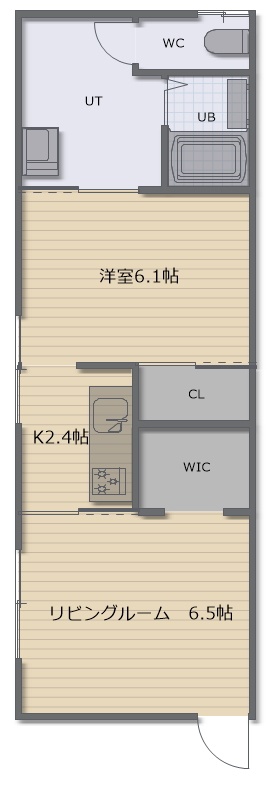 1LDK(38.84m²)└ D6.1帖 K2.4帖 洋室6.1帖