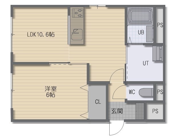 1LDK(39.23m²)└ LDK10.6帖 洋室6帖