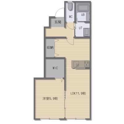 1LDK(45.27m²)└ LDK11.9帖 洋室5.9帖