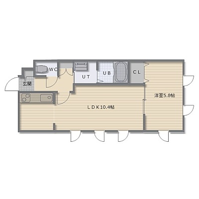 1LDK(37.5m²)└ LDK10.4帖 洋室5.8帖
