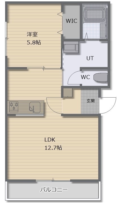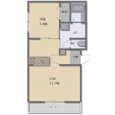 1LDK(43.44m²)└ LDK12.7帖 洋室5.8帖