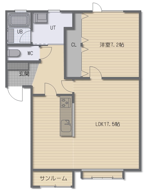 1LDK(55.6m²)└ LDK17.5帖 洋室7.5帖