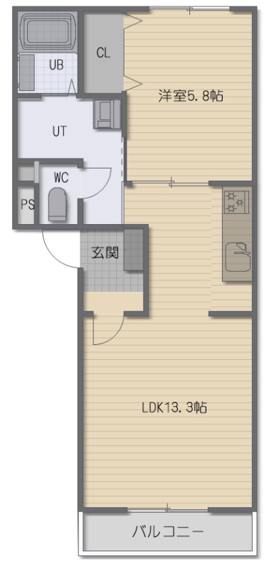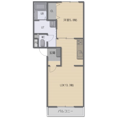 1LDK(44.53m²)└ LDK13.3帖 洋室5.8帖