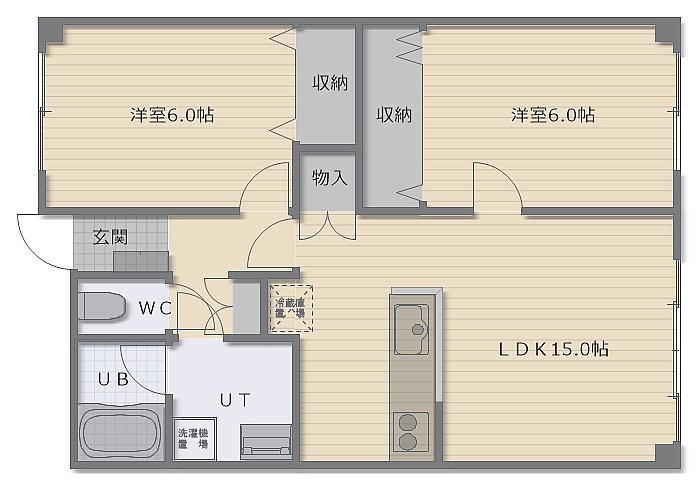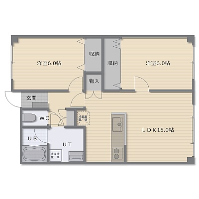2LDK(64.47m²)└ LDK15帖 洋室6帖 洋室6帖