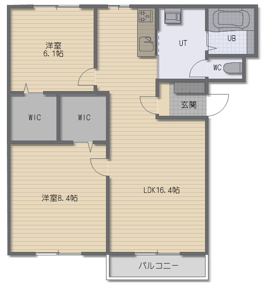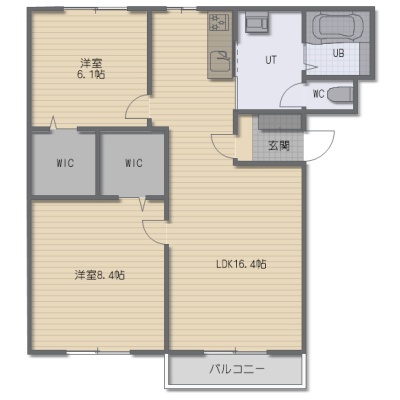 2LDK(69.23m²)└ LDK16.4帖 洋室8.4帖 洋室6.1帖