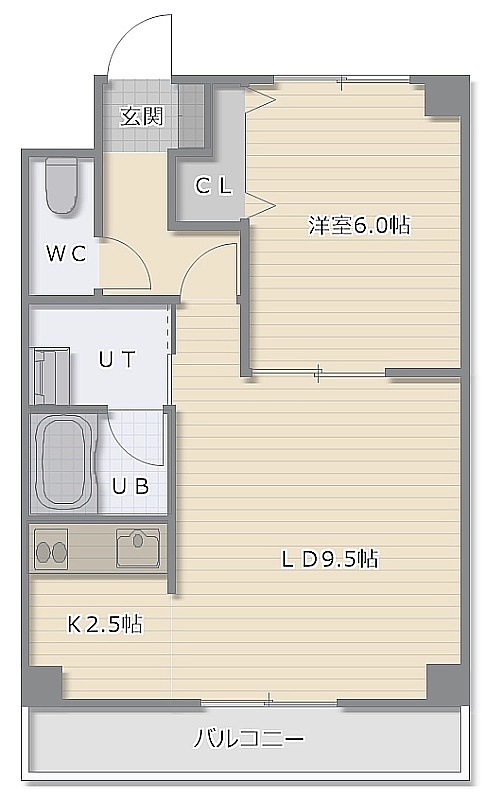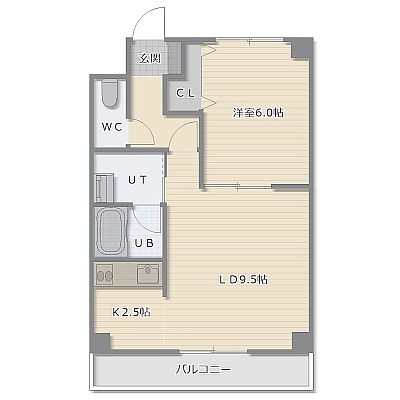 1LDK(39.6m²)└ LD9.5帖 K2.5帖 洋室6帖