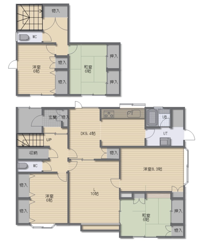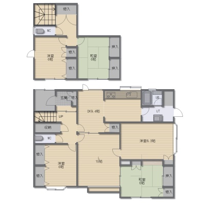 5LDK(134.35m²)└ 1階:LD15.25帖 K8.35帖 洋室8.35帖 洋室6帖 和室6帖 / 2階:洋室6帖 和室6帖