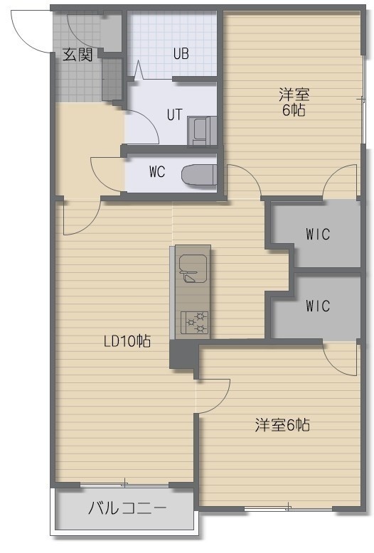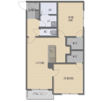 2LDK(60.69m²)└ LD10帖 洋室6帖 洋室6帖