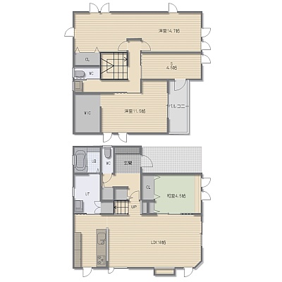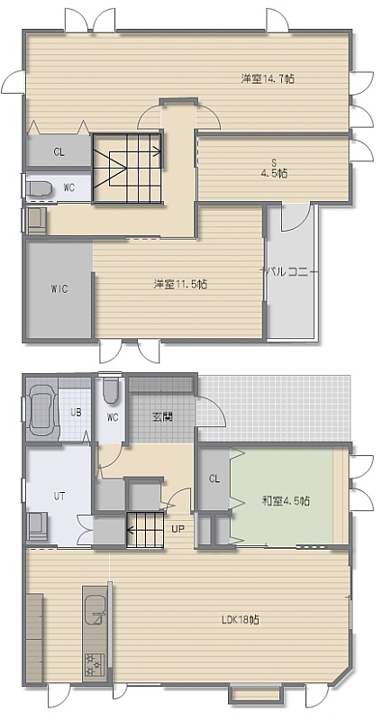 3SLDK(125.73m²)└ 1階:LDK14.7帖 和室4.5帖 / その他:洋室11.5帖 洋室14.7帖 S4.5帖