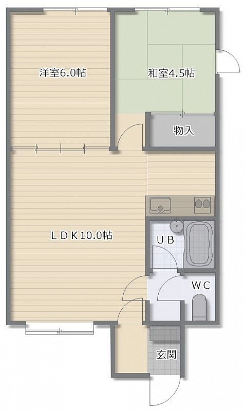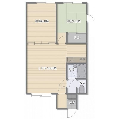 2LDK(43.48m²)└ LD10帖 K2帖 洋室6帖 和室4.5帖