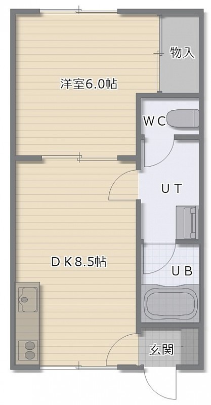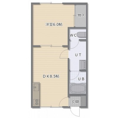 1DK(33.02m²)└ DK8.5帖 洋室6帖