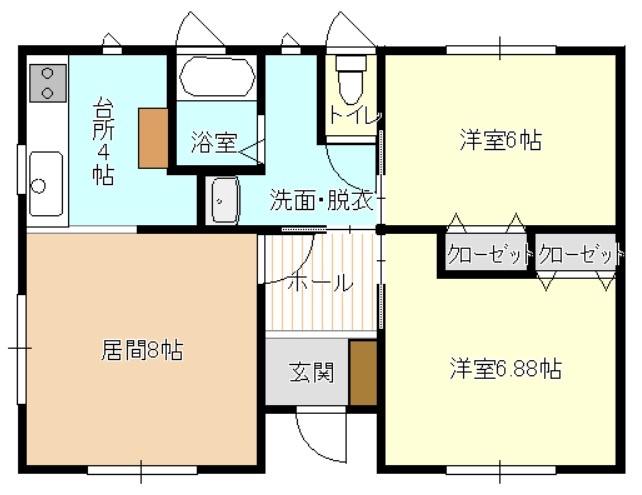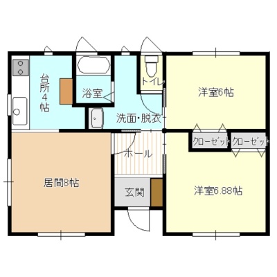 2LDK(56.31m²)└ 1階:LD8帖 K4帖 洋室6.8帖 洋室6帖