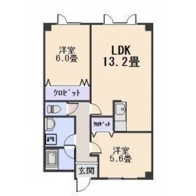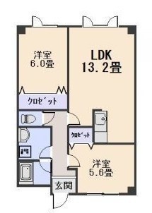 2LDK(57.98m²)└ 2階:LDK13.2帖 洋室6帖 洋室5.8帖