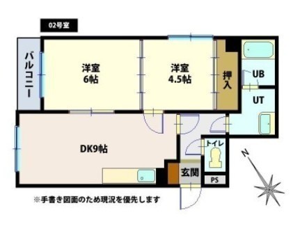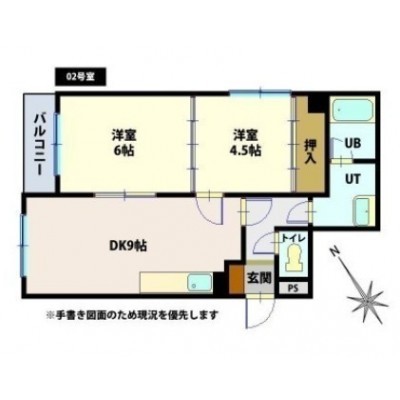 2DK(46.03m²)└ DK9帖 洋室6帖 洋室4.5帖