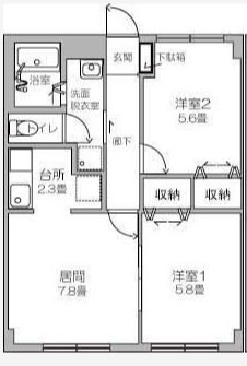2LDK(51.03m²)└ LDK10.1帖 洋室5.8帖 洋室5.6帖