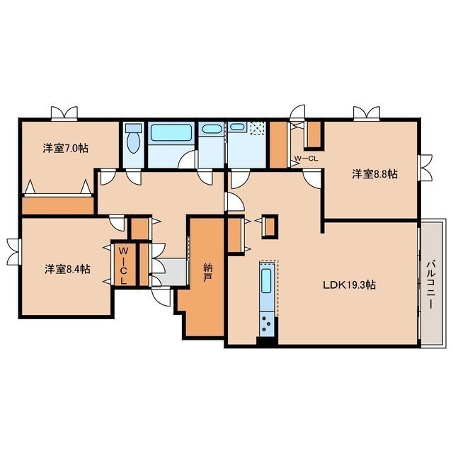 3LDK(142.52m²)└ LDK19.3帖 洋室8.8帖 洋室8.4帖 洋室7帖