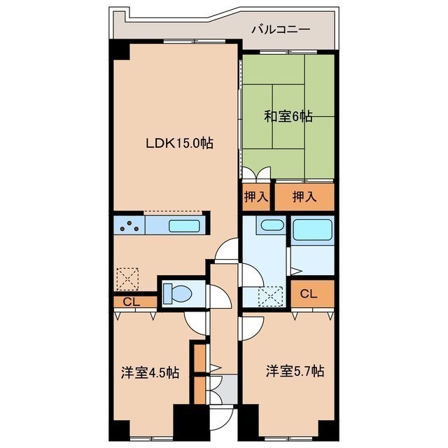 3LDK(70.37m²)└ LDK15帖 和室6帖 洋室4.5帖 洋室5.7帖