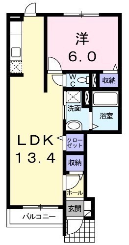 1LDK(44.28m²)└ LDK13.4帖 洋室6帖