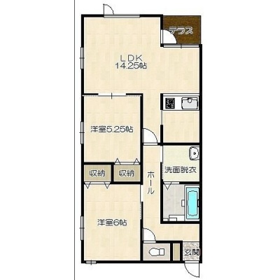 2LDK(59.6m²)└ LDK14.25帖 洋室5.25帖 洋室6帖