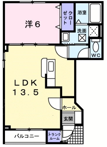 1LDK(45.14m²)└ LDK13.5帖 洋室6帖