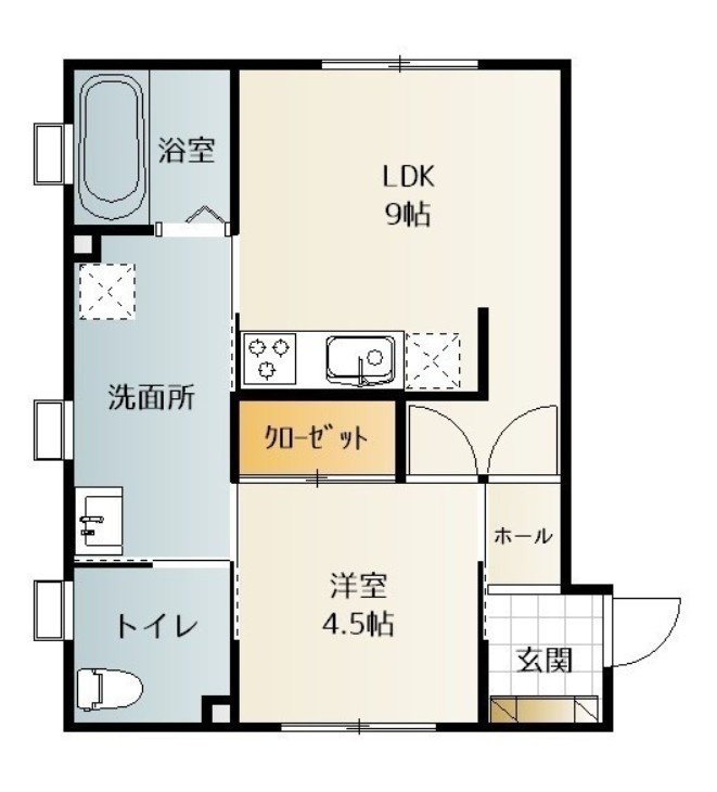 1DK(40.29m²)└ DK9帖 洋室4.5帖