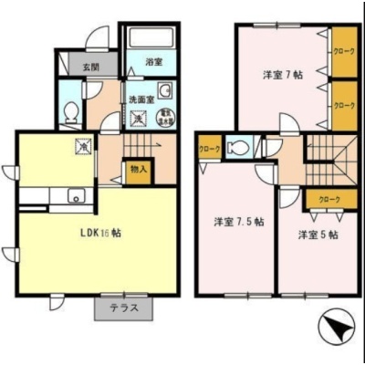 3LDK(88.17m²)└ 1階:LDK16帖 / 2階:洋室7.5帖 洋室7帖 洋室5帖