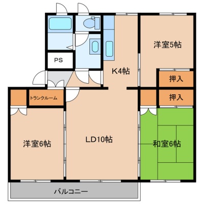 3LDK(69.48m²)└ LD10帖 K4帖 和室6帖 洋室6帖 洋室5帖