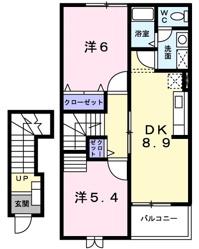 2DK(51.67m²)└ DK8.9帖 洋室6帖 洋室5.4帖