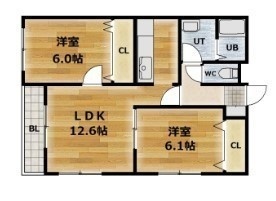 2LDK(58m²)└ LDK12.6帖 洋室6.1帖 洋室6帖