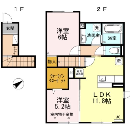 2LDK(61.56m²)└ LDK11.8帖 洋室6帖 洋室5.2帖