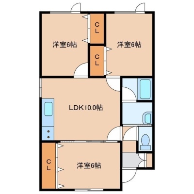 3LDK(61.15m²)└ LDK10帖 洋室6帖 洋室6帖 洋室6帖