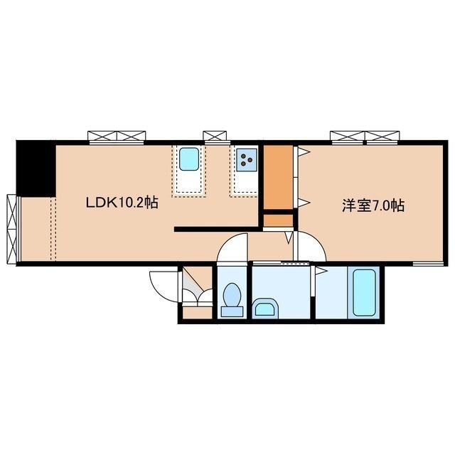 1LDK(44.28m²)└ LD8.2帖 K2帖 洋室7帖