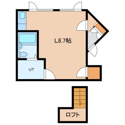 ワンルーム(21.5m²)└ L8.7帖