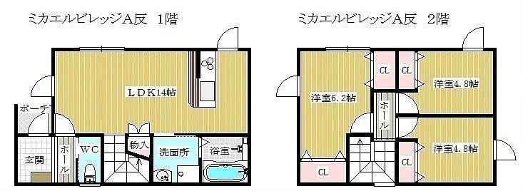 3LDK(75.35m²)└ LDK14帖 洋室4.8帖 洋室4.8帖 洋室6.2帖