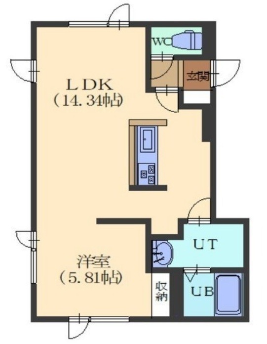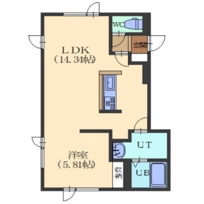 1LDK(43.43m²)└ LDK14.34帖 洋室5.81帖