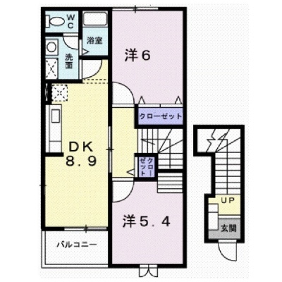 2DK(51.67m²)└ DK8.9帖 洋室6帖 洋室5.4帖