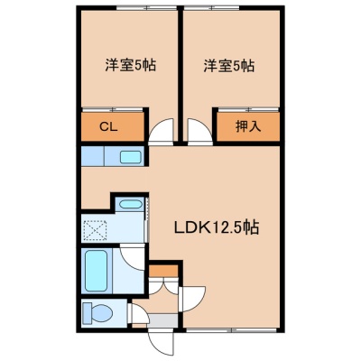 2LDK(51.15m²)└ LDK12.5帖 洋室5帖 洋室5帖