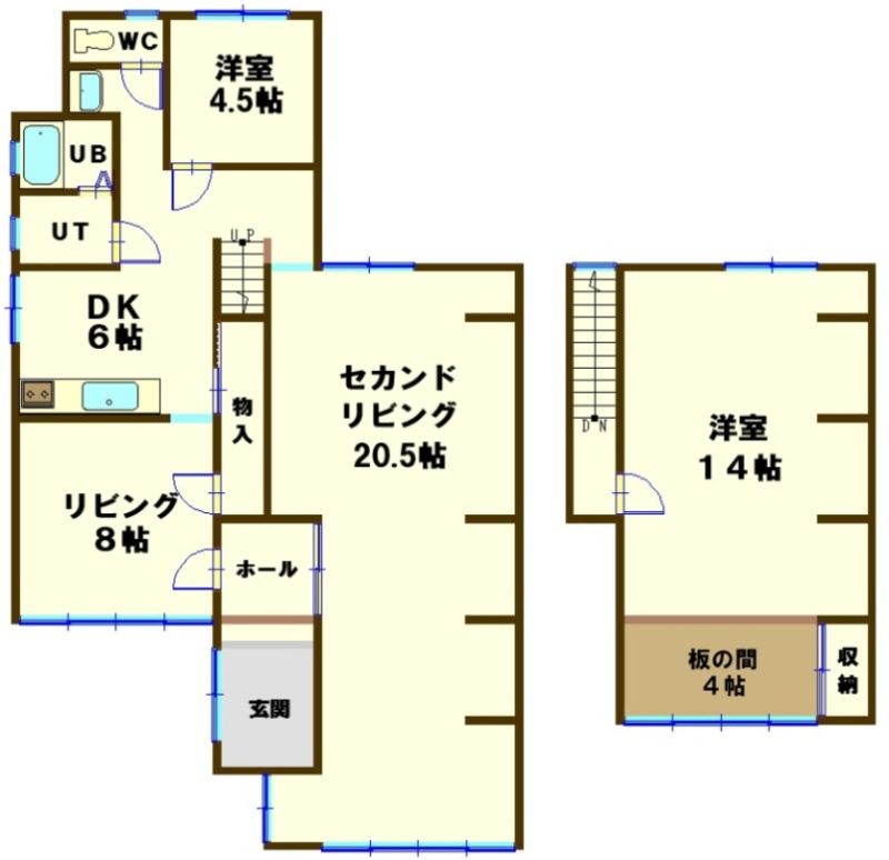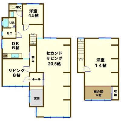 3LDK(143.67m²)└ 1階:L8帖 DK6帖 洋室20.5帖 洋室4.5帖 / 2階:洋室18帖