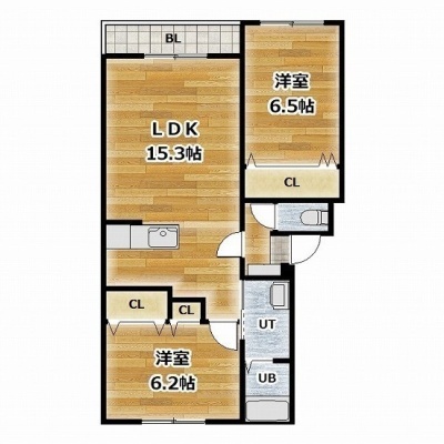2LDK(65.46m²)└ LDK15.3帖 洋室6.5帖 洋室6.2帖
