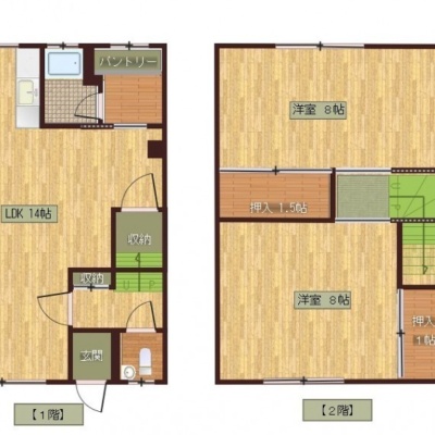 2LDK(66.25m²)└ 1階:LDK14帖 / 2階:洋室8帖 洋室8帖