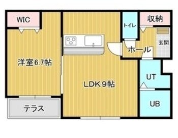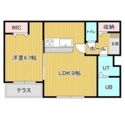 1LDK(45.62m²)└ LD9帖 洋室6.7帖 K2.8帖