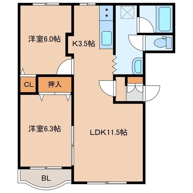 2LDK(58.31m²)└ LDK15帖 洋室6.3帖 洋室6帖