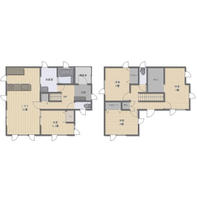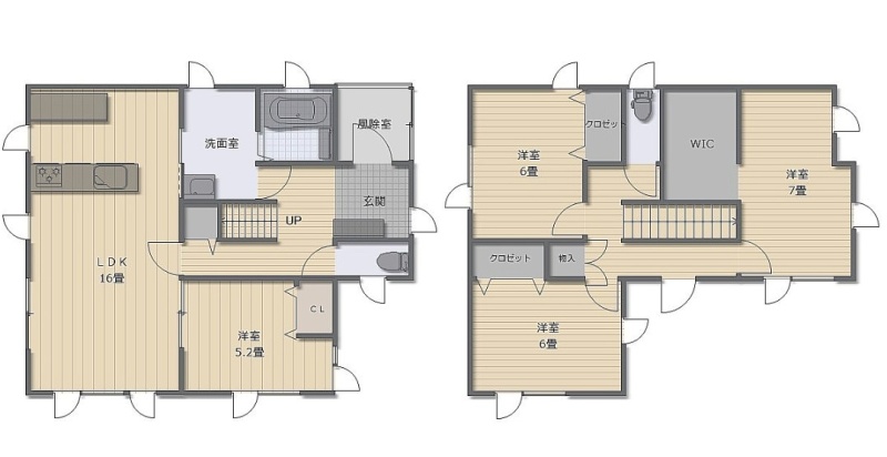 4LDK(108.93m²)└ 1階:LDK16帖 洋室5.25帖 / 2階:洋室7.28帖 洋室6帖 洋室6帖