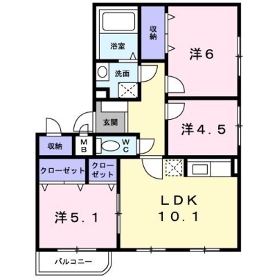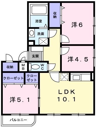 3LDK(60.48m²)└ LDK10.1帖 洋室6帖 洋室5帖 洋室4.5帖