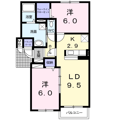 2LDK(55.84m²)└ LDK9.5帖 洋室6帖 洋室6帖