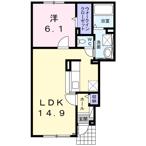 1LDK(48.19m²)└ LDK14.9帖 洋室6.1帖