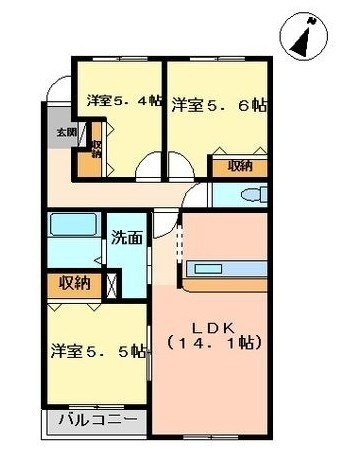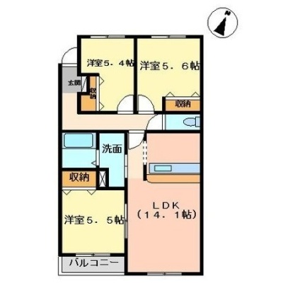 3LDK(71.4m²)└ LDK14.1帖 洋室5.5帖 洋室5.6帖 洋室5.4帖
