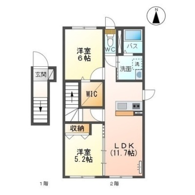 2LDK(60.34m²)└ LDK11.7帖 洋室5.2帖 洋室6帖